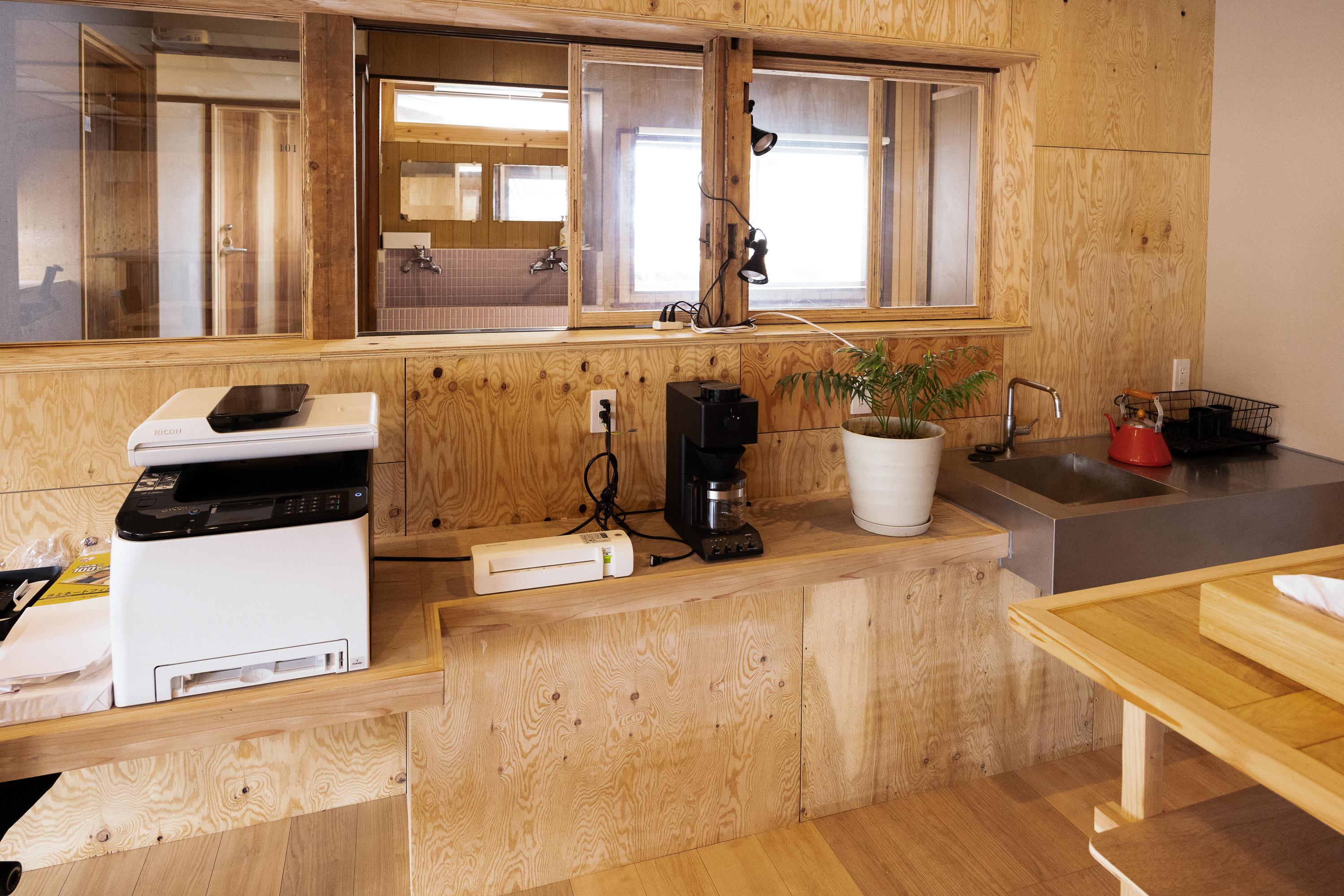 HOSTEL perch のコワーキングスペースは、 ゆったりとした時間と生産性をコンセプトにしております。 プリンターやラミネート加工もできます。